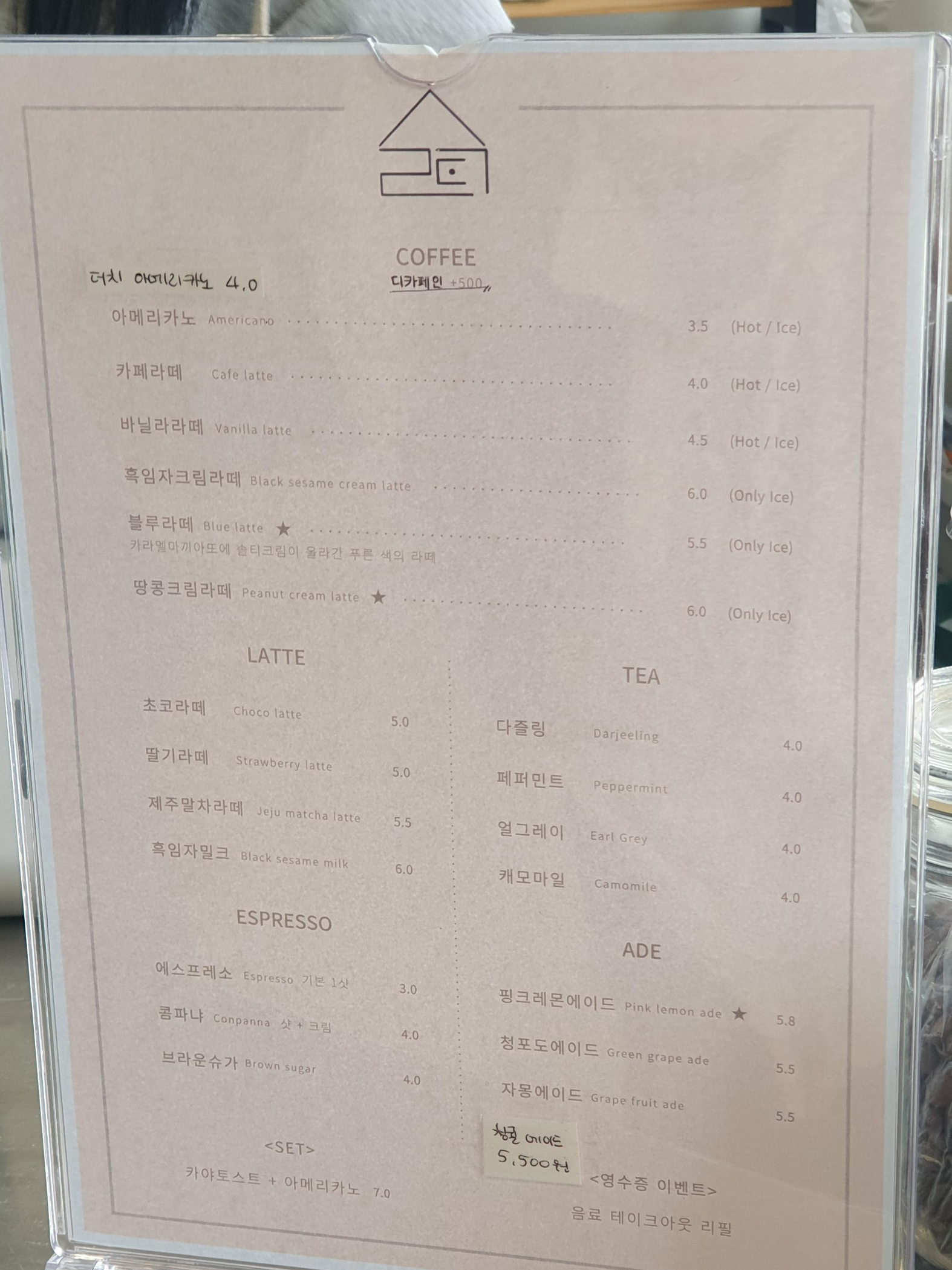 순서대로 카페라떼, 핑크레모네이드, 탠저린에이드 입니다.