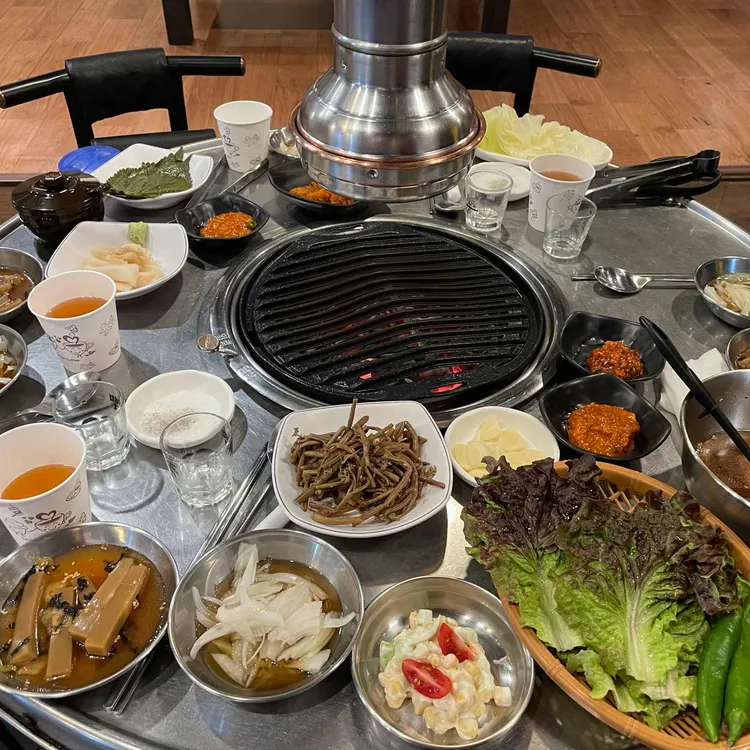 고기, 버섯, 고사리, 더덕을 얹어 구운 것