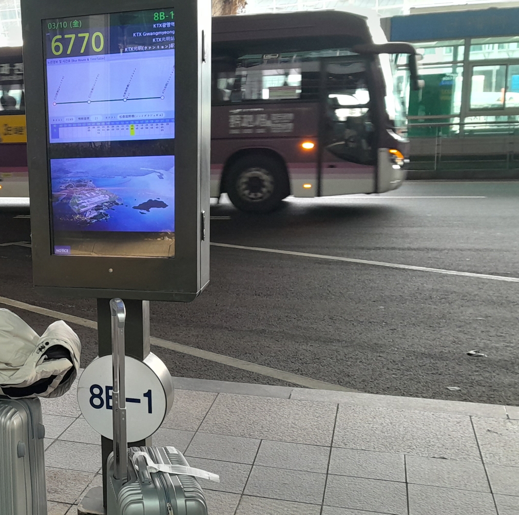 비행기가 도착한 후 짐을 찾고 그냥 출구로 나오니 쭉 가면 버스 정류장이 있습니다.