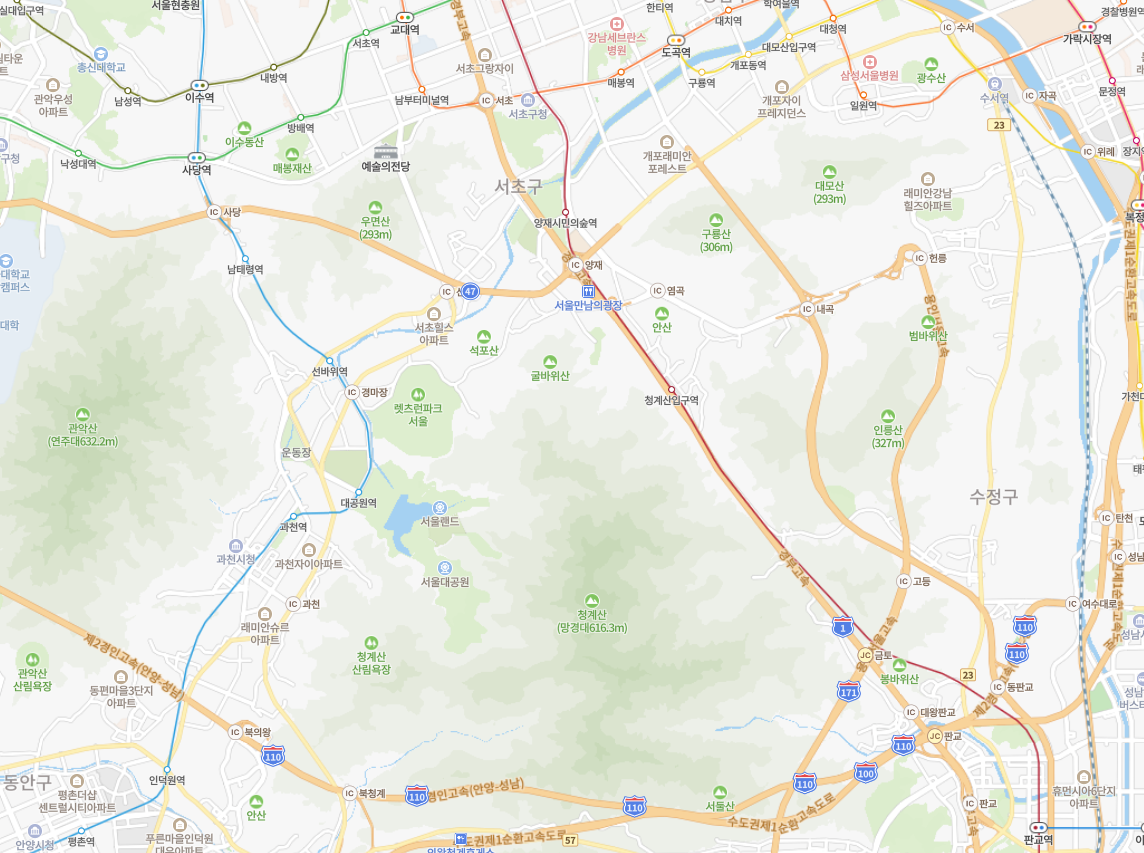 청계산은 서울과 경기도에 걸쳐 있는 산으로 매봉, 옥녀봉 등 여러 봉우리와 계곡이 있다. 청계산은 등산객들에게 풍경과 난이도가 다른 다양한 루트를 제공합니다.